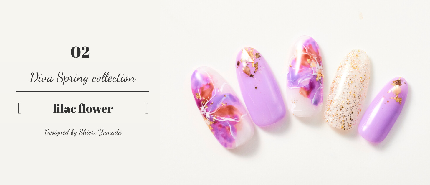 パープルをメインに薄くも鮮やかな色合いに色を重ね、繊細なラインで描かれた大人なフラワーアート。春ネイルでも人とは少し違う雰囲気を身につけたい方に是非。春から夏にかけて、綺麗めカジュアルにぴったり。
