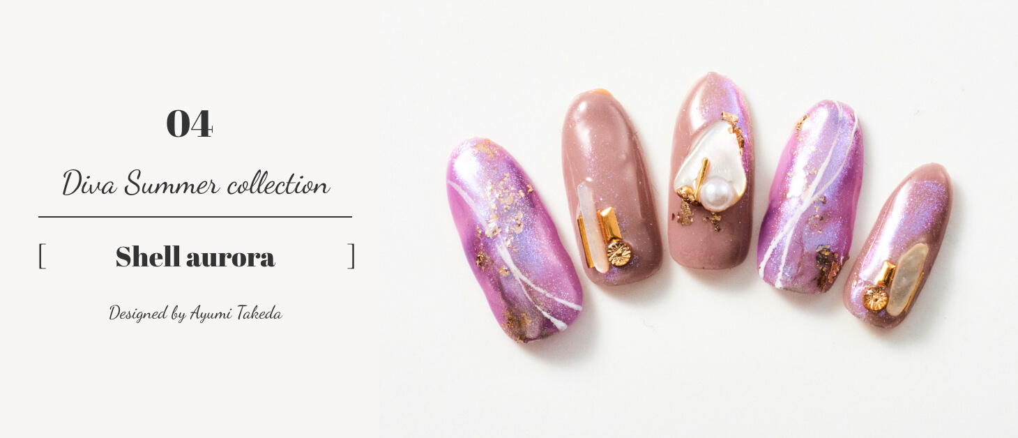 重ね塗りをすることで立体感をプラス。シェルの大きさを小さくすれば、控えめな大人なデザインにも変身。初夏にぴったりのデザイン。