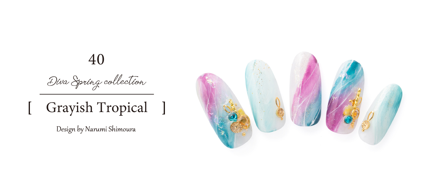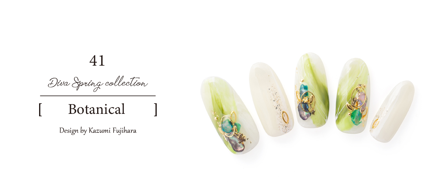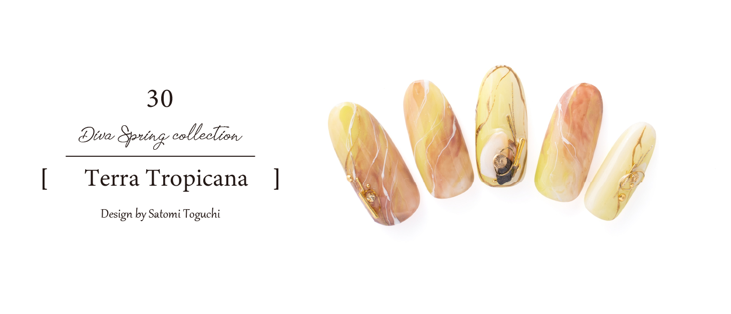 トレンドでもあるテラトロピカーナをイメージし、黄緑も肌馴染みがしやすいようにクリア感とブラウンで濃淡をつけました。また、白とゴールドのラインで上品さを。