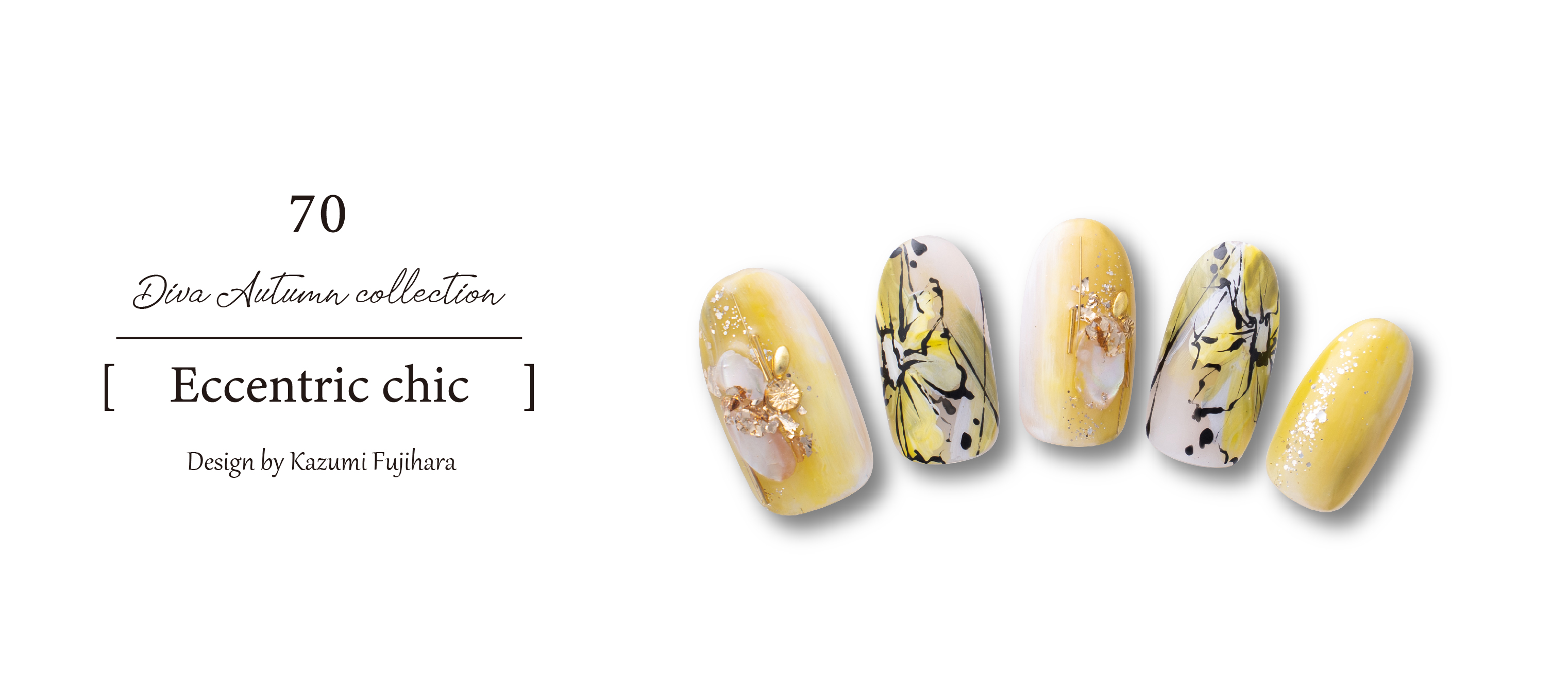 ベージュベースにポイントでイエローとゴールドを組み合わせてデザインし、大人ゴージャスなデザインに