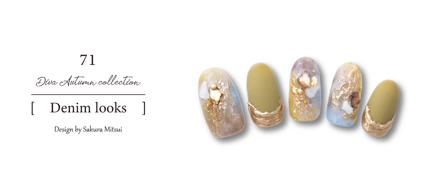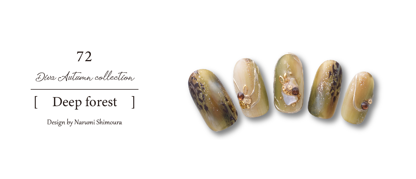 カーキとブラウンにレオパード柄で大人っぽいデザイン。流行りのミラーゴールドもいれ華やかな印象に仕上げました。