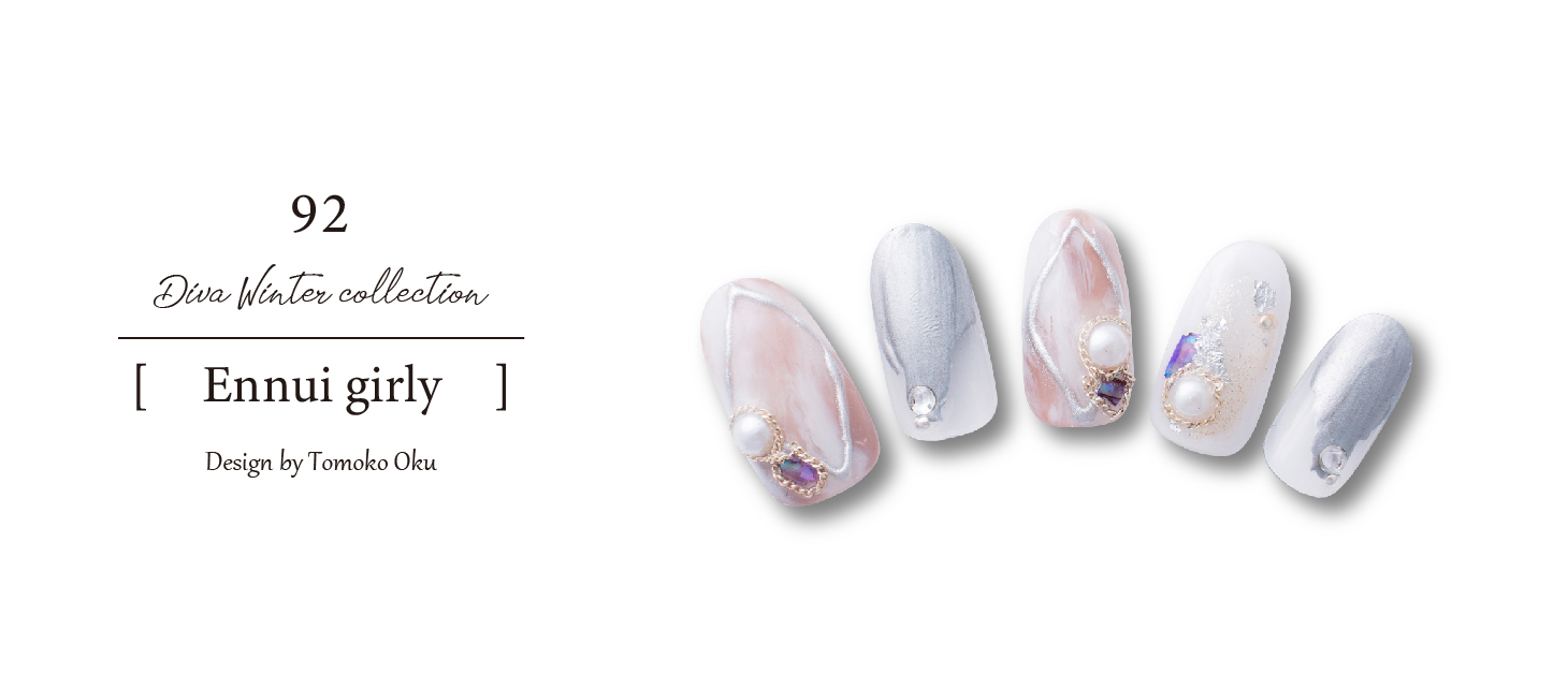 塗りかけのデザインでアンニュイさを出し、クリア感で柔らかさを出して女の子らしいイメージに仕上げました。