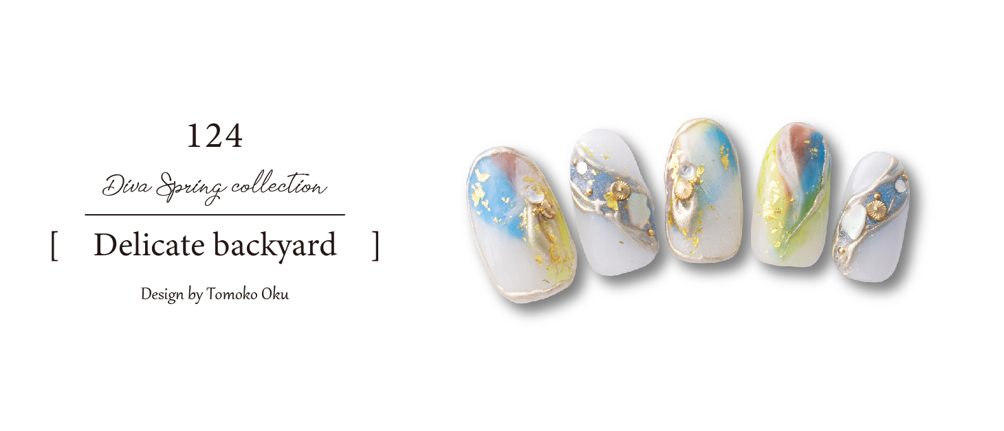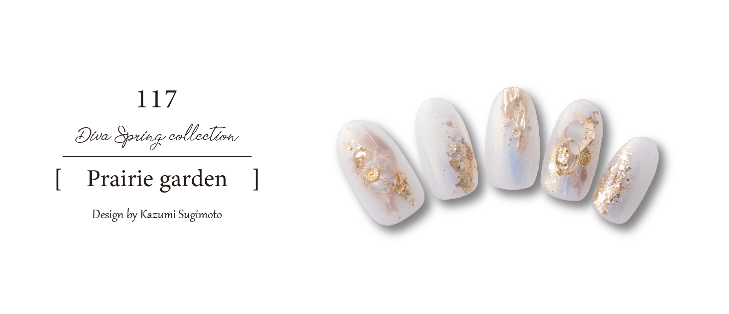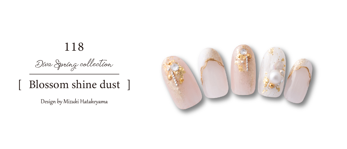 メインの指輪にはオーロラミラーを載せ透明感の中にも奥行きのかるデザインに。全体的に落ち着いたカラーを組合せチャレンジしやすいデザインに。