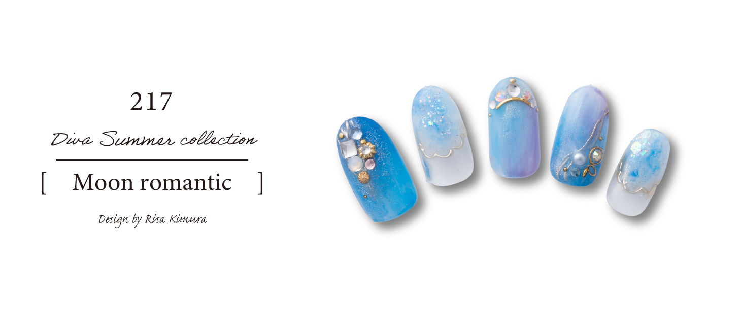 統一感のあるカラーで濃淡を作りメリハリを作りました。ロマンティックな夜空をイメージして星のようなキラキラとしたストーンやラメが光り輝くデザインになってます。
