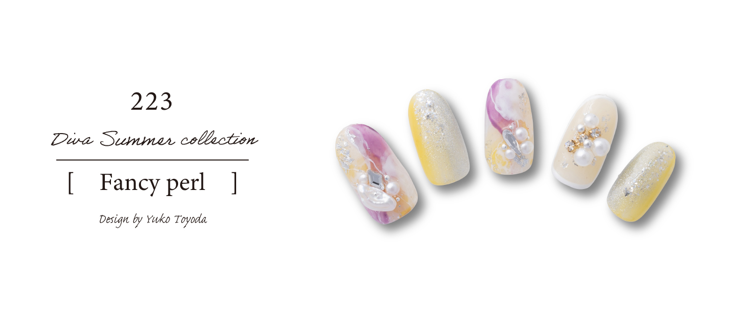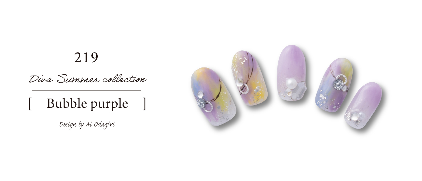 イエローとパープルの色合わせで派手になり過ぎないように白をプラス。パールやホログラムで可愛らしさを出しながらマグネットで抜け感も出るように仕上げました。/span>