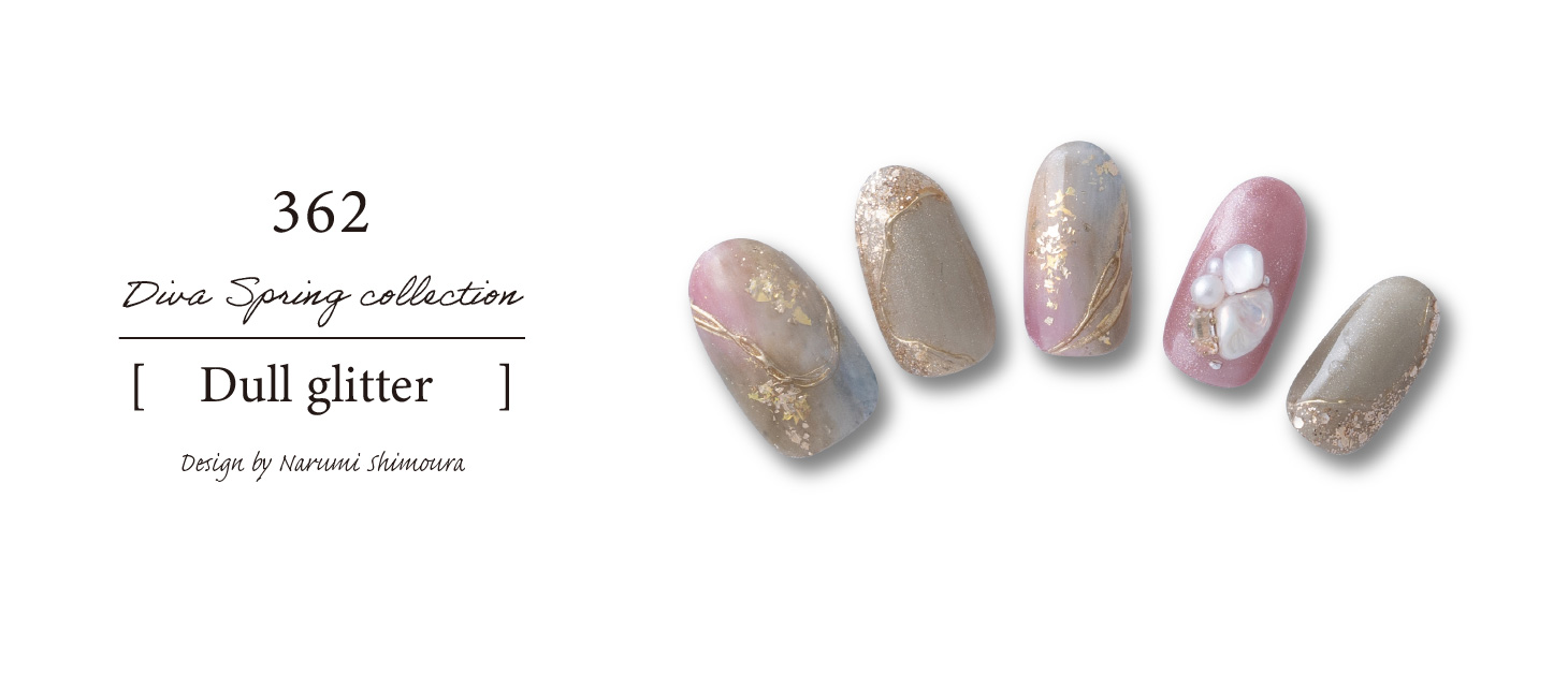 春らしいカラフルカラーを大人っぽいくすみカラーでまとめ、派手になりすぎないように仕上げました。全体にラメを入れることで華やかさもプラス!